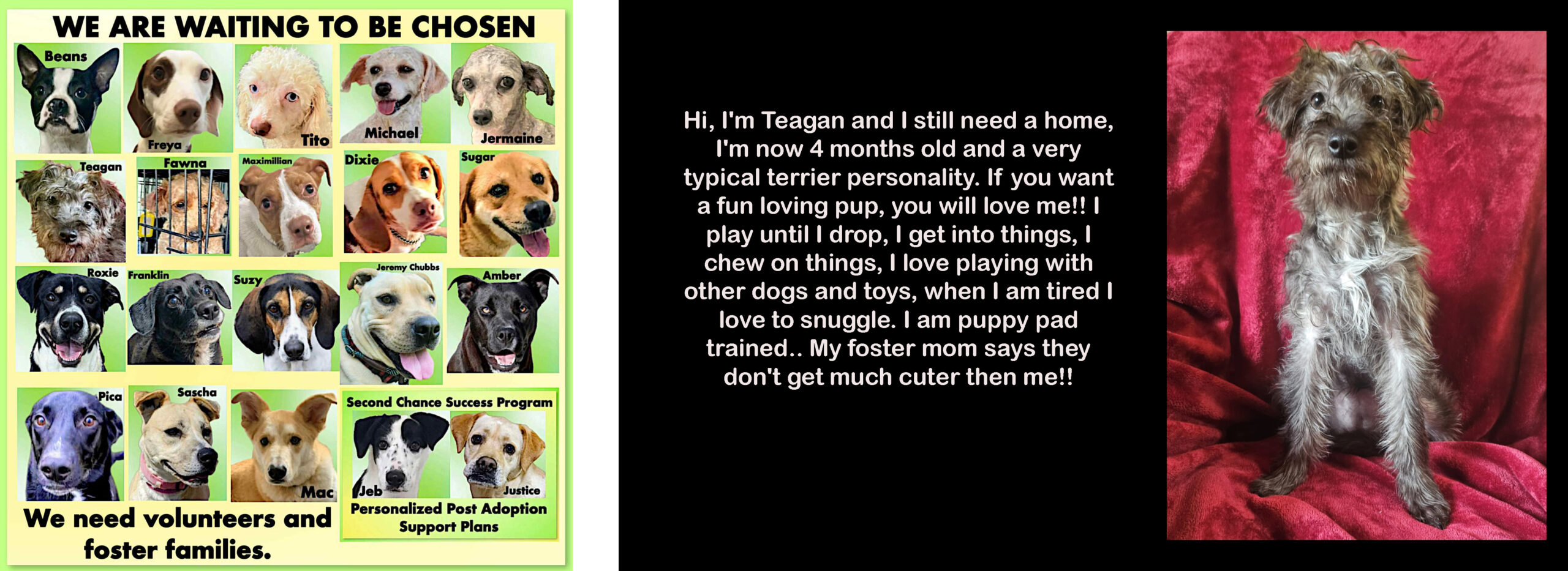 Would you consider fostering? If so, we’d love to have your help. To get started, fill out a foster application that you’ll find