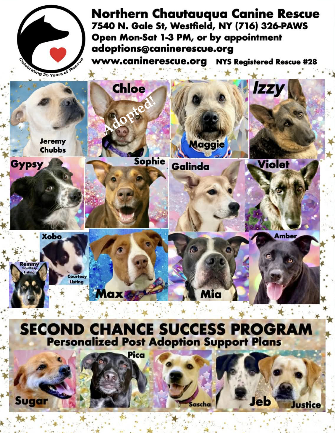 The drawing will be held on February 14th. All proceeds benefit the NCCR dogs!