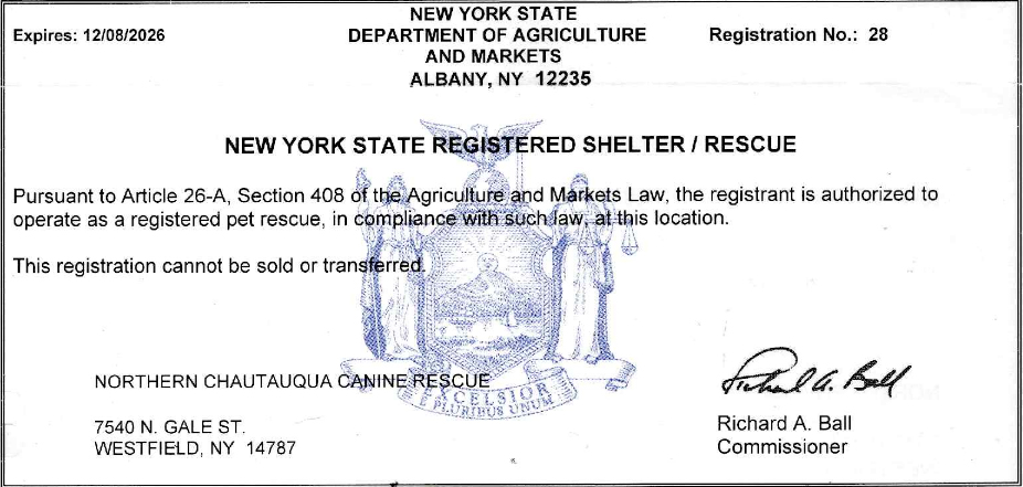 We are a 501(c)3 non-profit organization. All donations made to NCCR are tax deductible to the extent allowable by law. All proceeds from donations go strictly toward the care of our dogs. We are a volunteer-run group and rely solely upon donations as we receive no government funding.