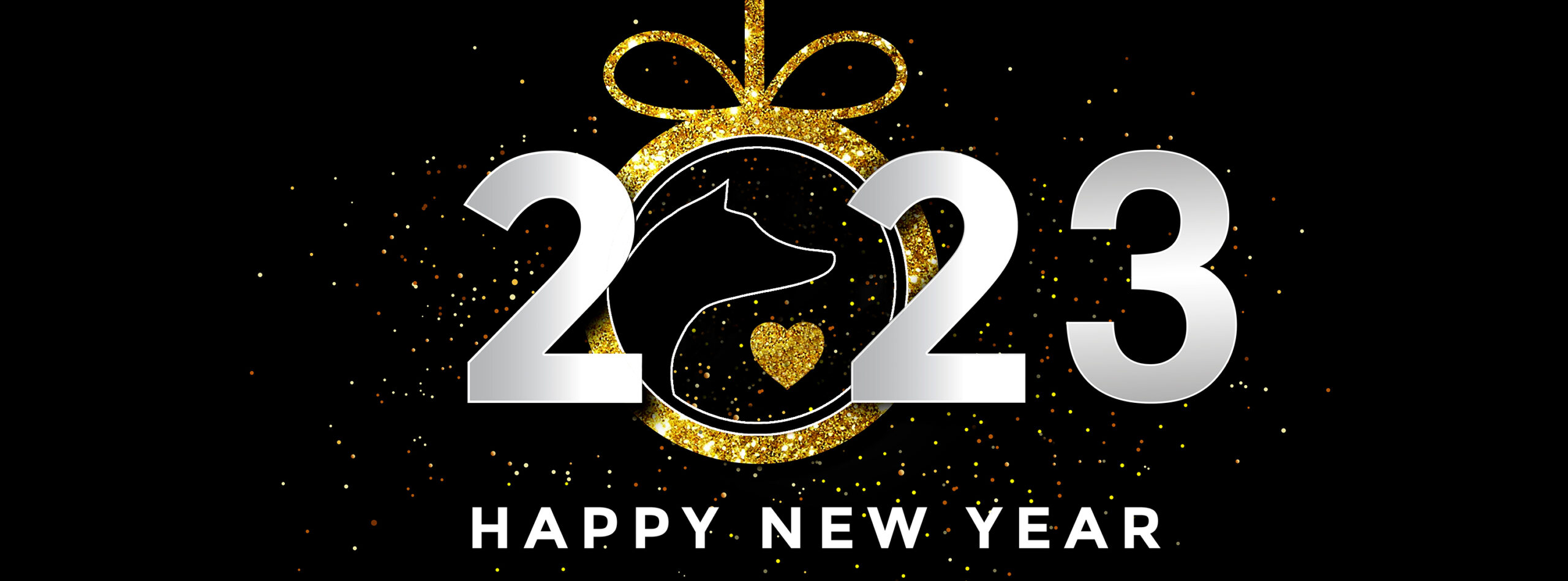 Happy,New,Year,2023,With,A,Dog,,Black,Background.
